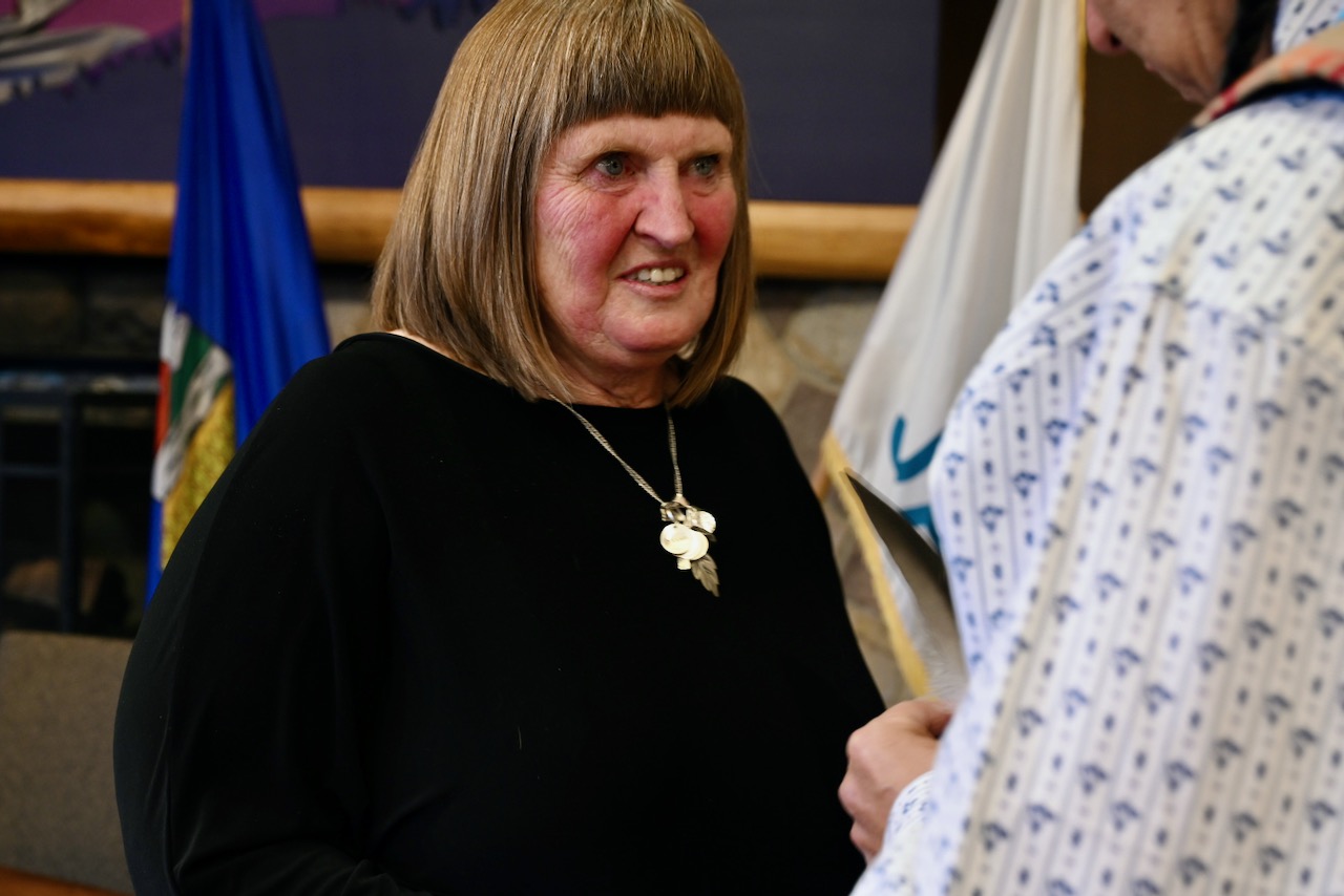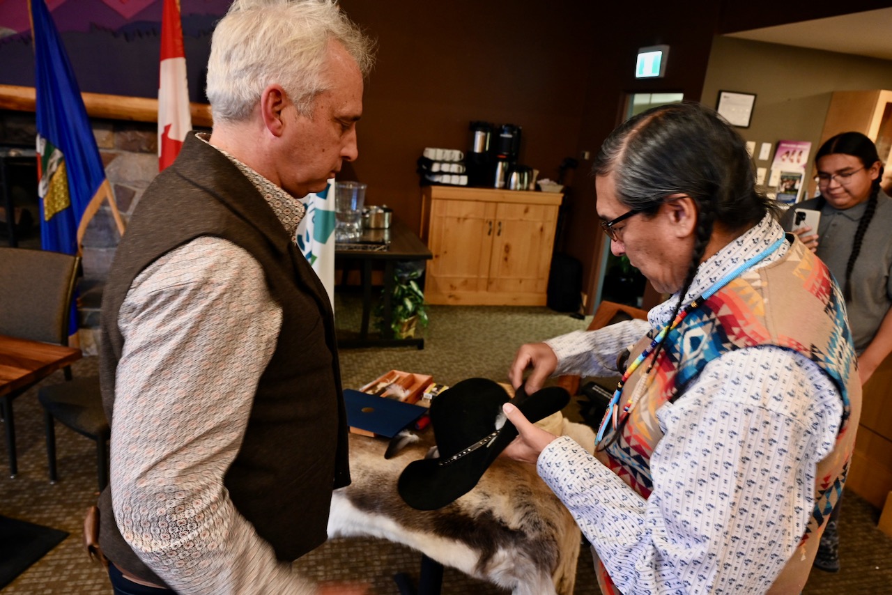 Stony elder and knowledge keeper, Barry Wesley, helped officiate the swearing in ceremony. He presented an eagle feather to each councillor, describing the feather as representing the importance of truth, honesty, and humility.