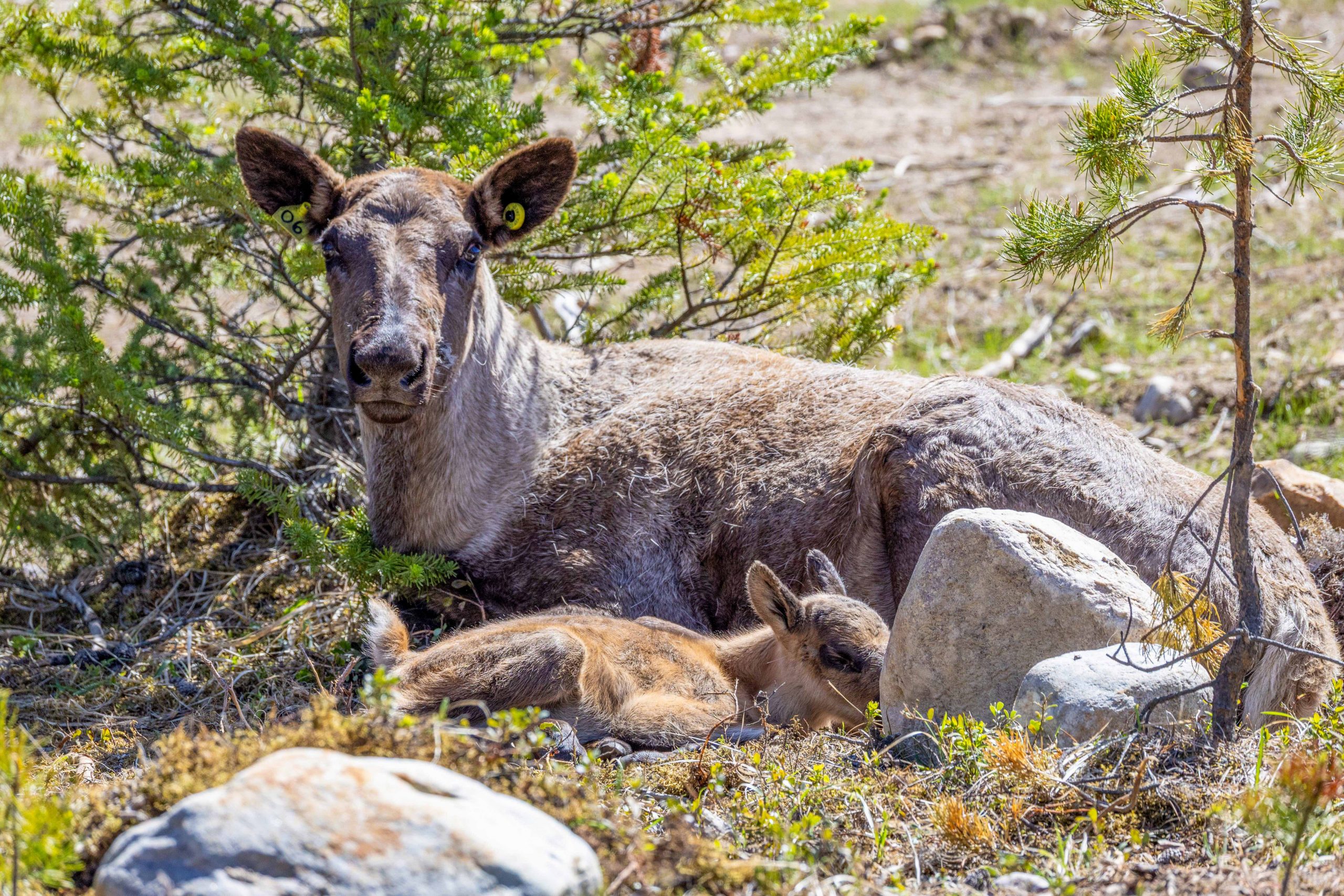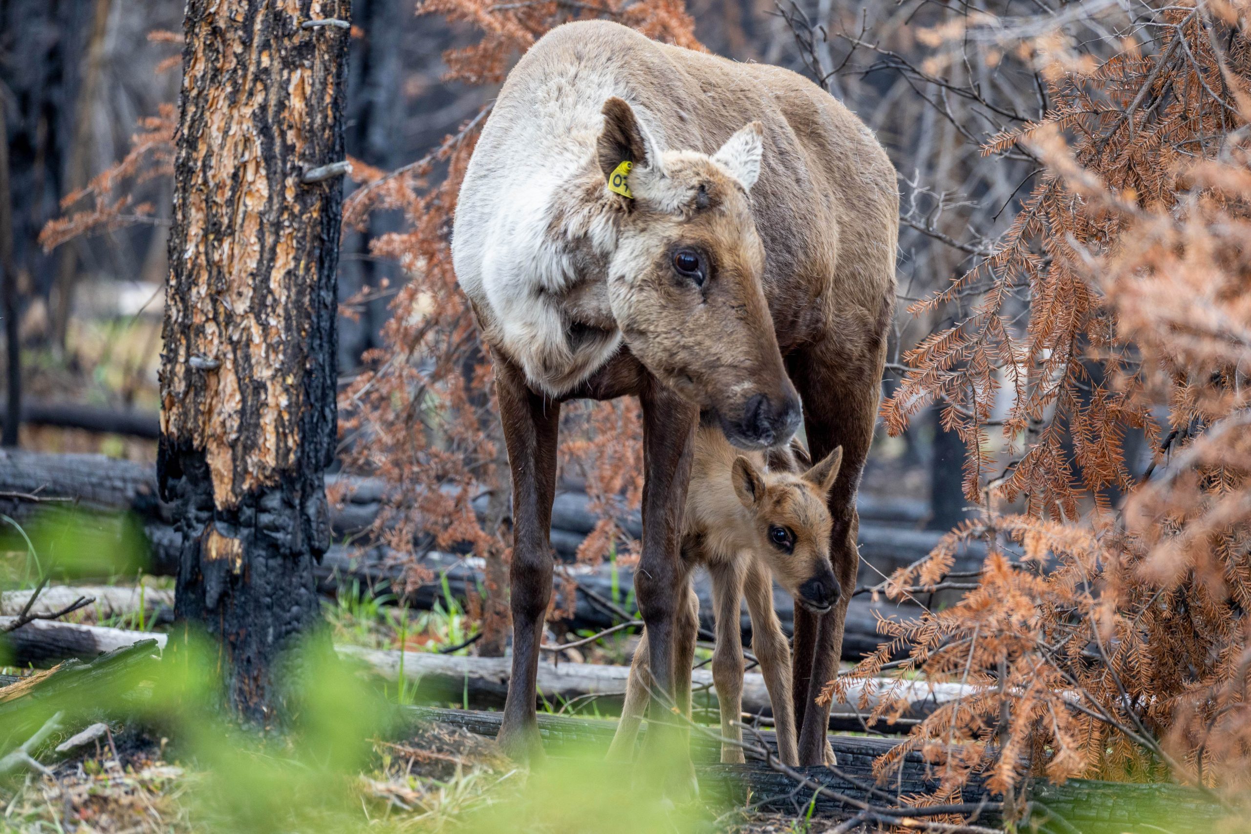 Over the summer, the calves slowly weened themselves from nursing and started to eat pellets and lichen. Aseniwuche Winewak Nation, Kelly Lake Cree Nation, and Mountain Cree have provided over 500 bags of dried lichen for the caribou to eat throughout the year. Indigenous partners have also held ceremonies to protect and honour caribou.