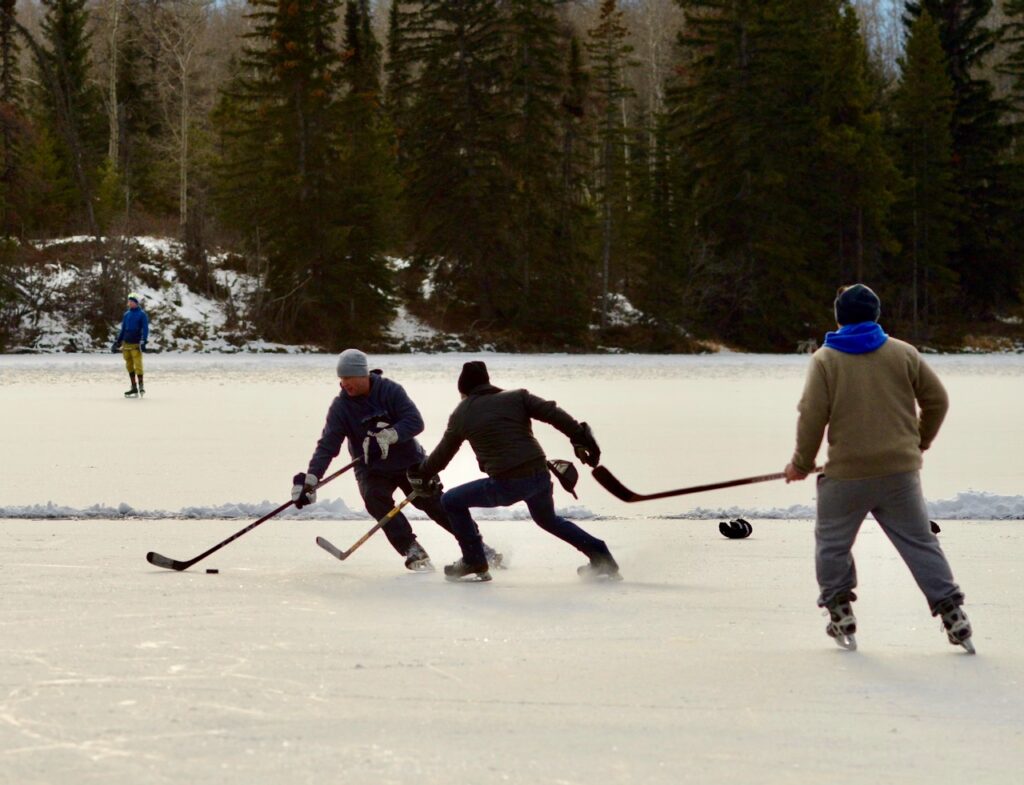 If you want to learn about hockey in Jasper, Alden is your guy. He’s always played, captaining Jasper’s senior teams throughout the ’60s, and even skating for Saskatchewan’s storied Melville Millionaires one season. But his memories skating on the many frozen lakes and ponds around Jasper are among his most fond. Alden remembers piling enough players for two teams into his Model A Ford, roof cut off and tricked out with a sofa for a back seat. Chucking in an old tire (for the bonfire), they’d rattle out to Patricia Lake, Valley of the Five Lakes, or the Twin Lakes for some hotly-contested shinny. The wardens would show up to make sure the fire was under control and to make sure Alden’s Model A was not defying Newton’s laws of physics with its loose cargo of Jasper’s youth.