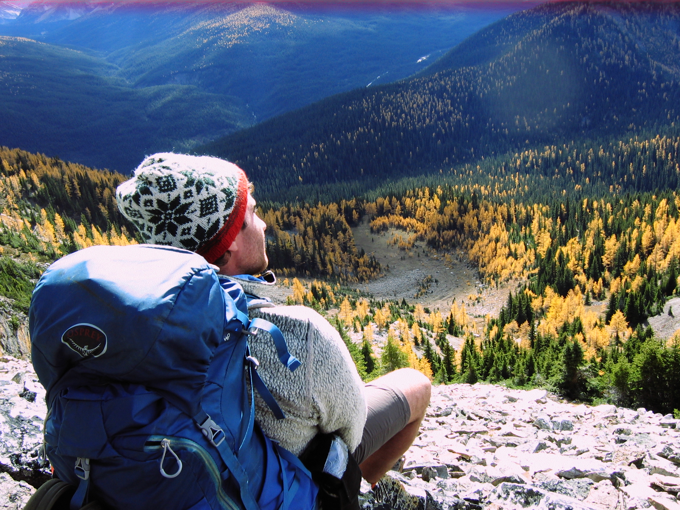 Gorged and bloated, there was nothing for it but to climb a mountain on the way out. We hung a left from the trail and hiked into an open larch forest. Soon, a big bowl with a larch-fringed rim. Dazzling gilded light and a deep blue sky. We stopped for lunch then climbed through a golden dream to the top of Copper Mountain, my first peak as a 70-year-old. Tomorrow is another day—hopefully.