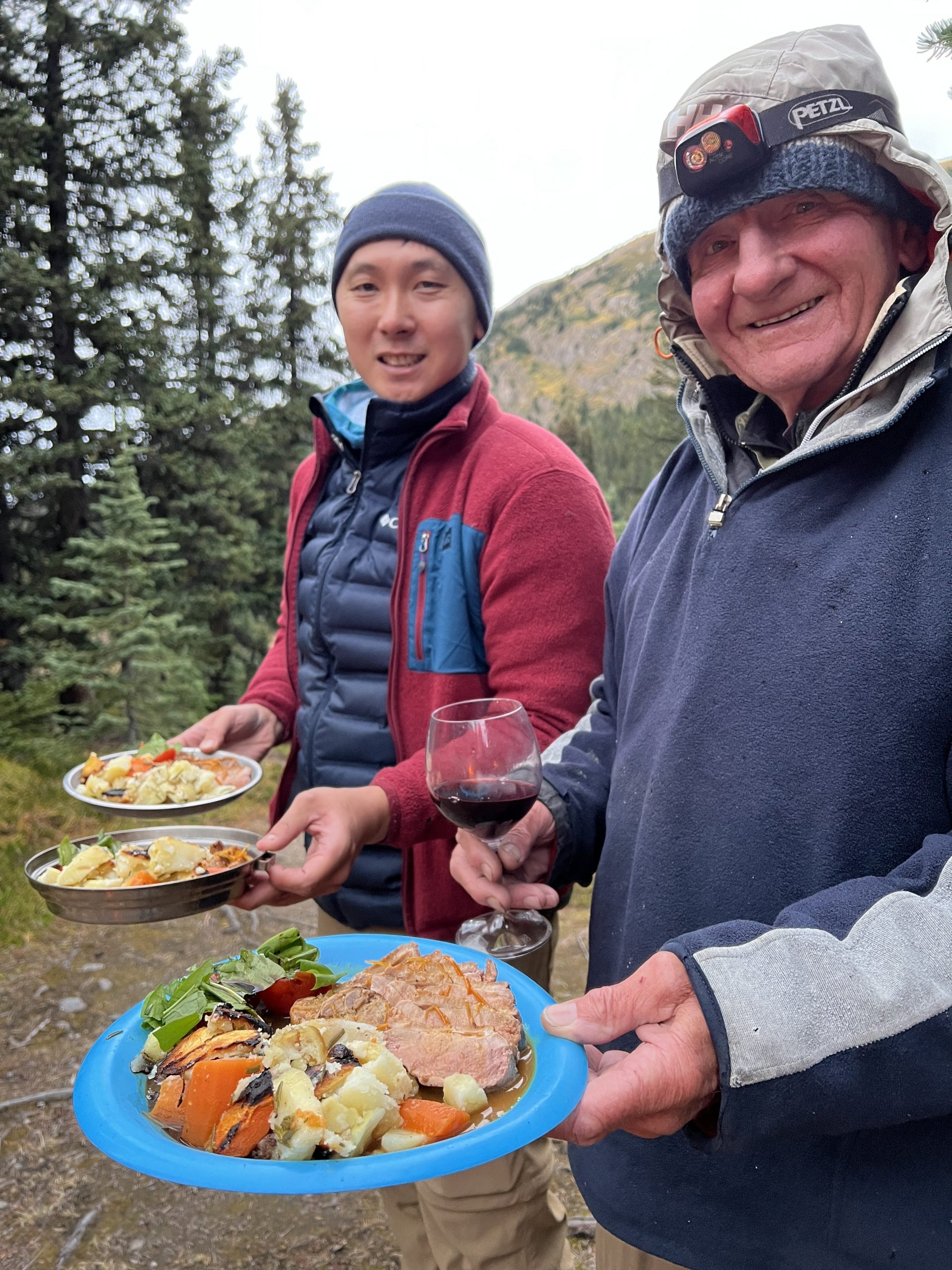 The pay-off for the pain was the birthday dinner that night. The camp spot was on the Poboktan trail. Tomorrow we’d backtrack a kilometre and take the Maligne Pass trail.