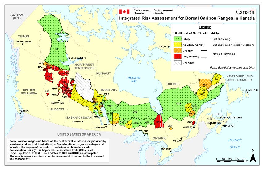 Press Secretary Fournier also told me that the GoA has “fully complied with the Section 11 Agreement,” and has “gone further than any government to protect caribou.” Since the Section 11 agreement is mostly just more promises to create plans, it’s a stretch to say Alberta has fully complied, because only three of the 11 plans were completed by the deadline. And while the argument could be made that Alberta has “gone further than any other government” (a very low bar to clear), it also has a lot further to go. Alberta’s boreal forest has more industrial disturbance and a lower probability of caribou persistence than every other province or territory, with the possible exception of B.C. (the boreal forest is just a tiny corner in B.C.’s northeast).