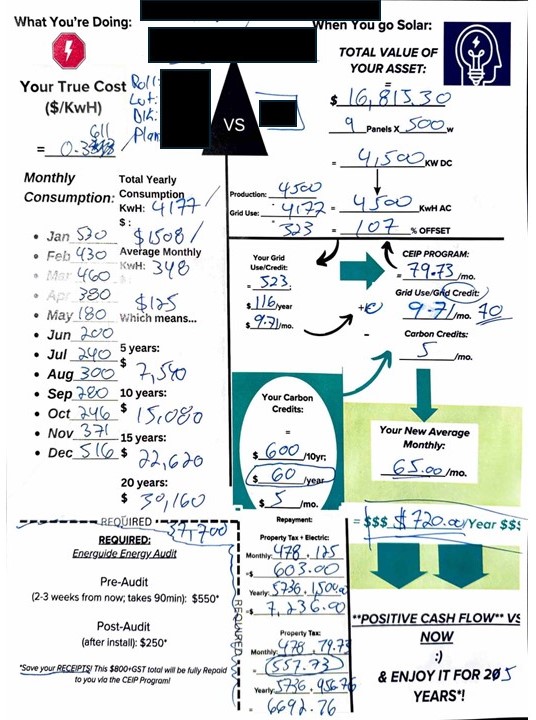 That wasn’t the only red flag. Given the repeated mention of one, and only one, Edmonton-based solar installer, I was quite sure where our “best” quote was going to come from. Whether Sonny was earning a referral fee or a commission, I’m not sure.