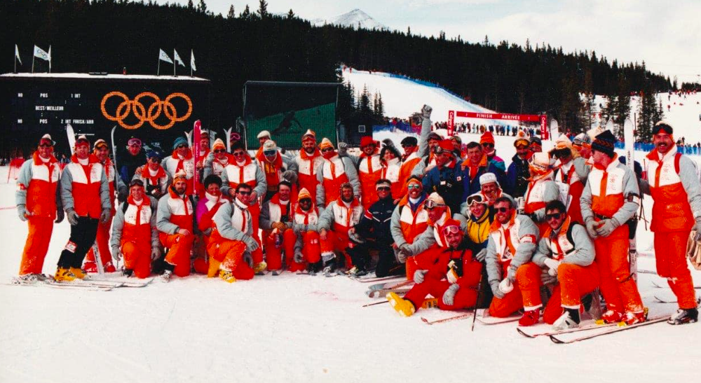 Alberta ski team member Brian Wilson wasn’t called to race, but rather to volunteer. He and his Jasper mates worked the slopes, erecting safety fencing and setting gates for competitors from ski nations as unlikely as Mexico and Morocco. They did their job, and even got a volunteer medal, but what Brian recalled most of all was the fun.