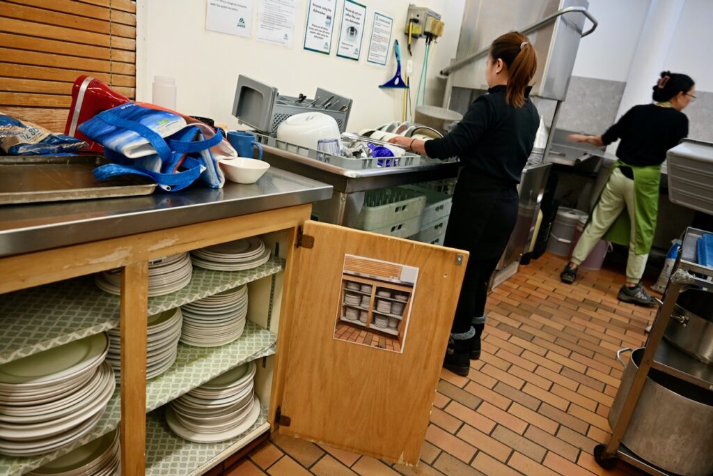 “I was washing dishes for the Community Dinner, which I totally think is a great event, and trying to find three dishes that stack up together is just about impossible,” Kongsrud said.